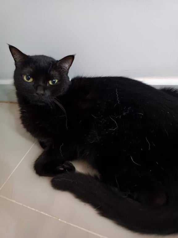 แมวขนสีดำยาว ขนนิ่มมาก ขี้ตกใจ ถ้าเรียกชื่อสามารถจับตัวได้ถึงแม้ไม่ใช่เจ้าของ