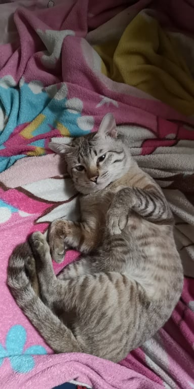 รอยตำหนิ: สีตรงสะโพกจะเข้มกว่าตรงอื่น มีจุดตรงข้างจมูก2ข้าง ตาเหล่หน่อยๆ ไม่มีปอกคอนอนกอดได้ ขี้ระแวงคนอื่น ชอบกัด เล่นแรง