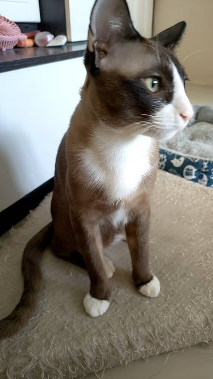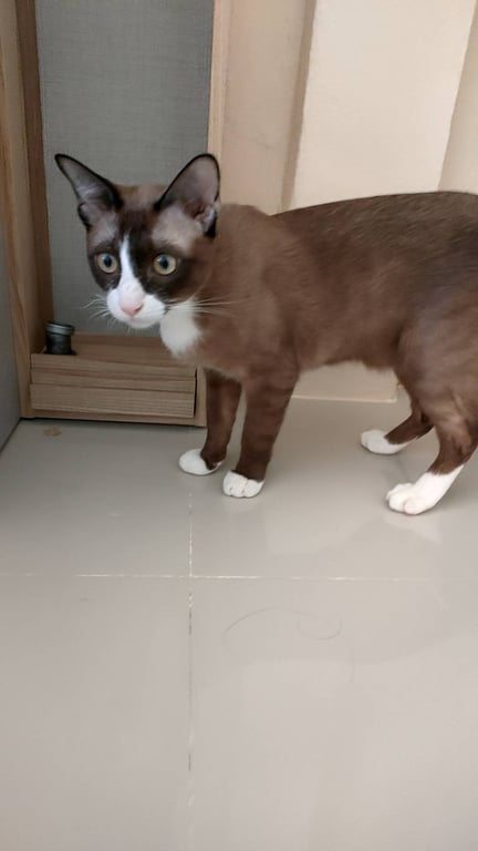 รอยตำหนิ: ช่วงจมูกจนถึงลำคอเป็นสีขาว ขาทั้ง 4 ข้างเป็นสีขาว