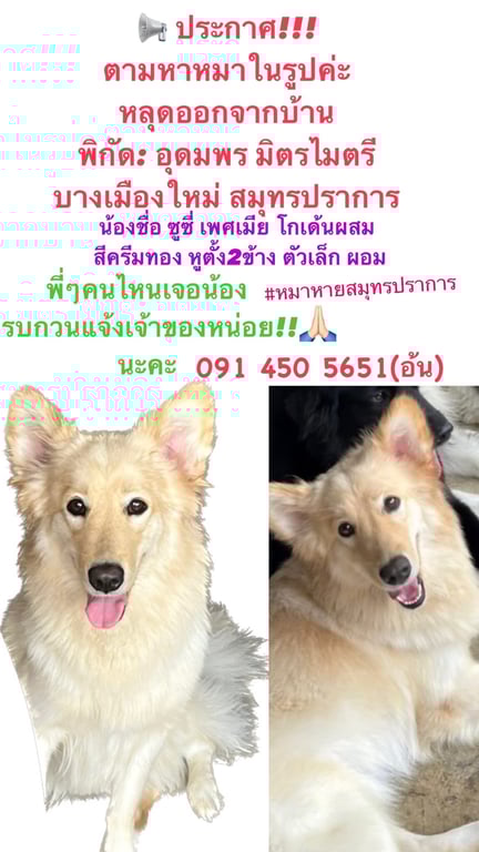 รอยตำหนิ: ตัวเล็ก ผอมเพรียว หูตั้งน้องหลุดออกจากบ้านวันที่ 24 มีนาคม 2566 ช่วงสายๆค่ะ