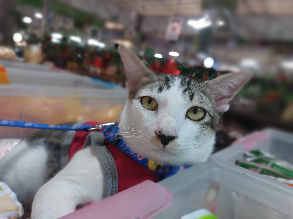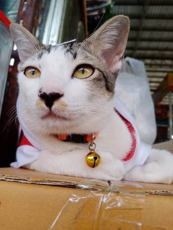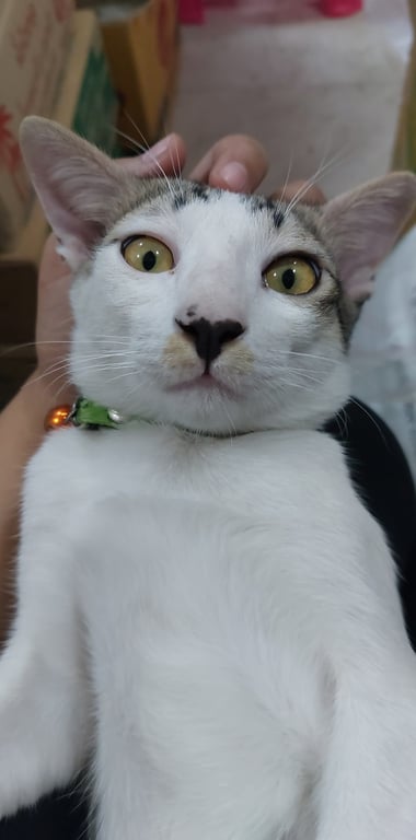 รอยตำหนิ: มีลายสีเหลืองบริเวณปาก ขอบตาดำข้างนึงขาวขางนึง จมูกสีดำเชื่องกับคน