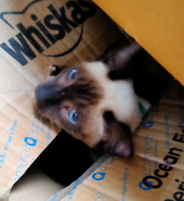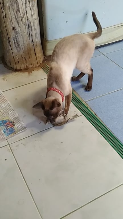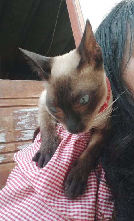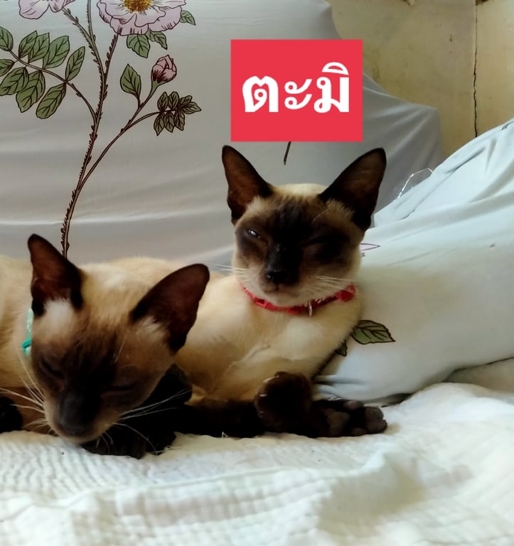 รอยตำหนิ: รอบเบ้าตา จะมีสีอ่อน เสียงใส ใส่ปลอกคอสีแดง หางยาว ทรงผอมชลูดค่อนข้างกลัวคนแปลกหน้า น้องติดเจ้าของและฝาแฝดมากๆ เสียงร้องใสๆ นิสัยปกติดซุกซน กินน้ำเก่ง ชอบตะปรบ สัตว์เล็กเล่น ปีนต้นไม้ ชอบกินข้าวเหนียวแห้ง กลัวไม้กวาด ชอบขี่คอเจ้าของและนั่งตัก ชอบขบมือ
