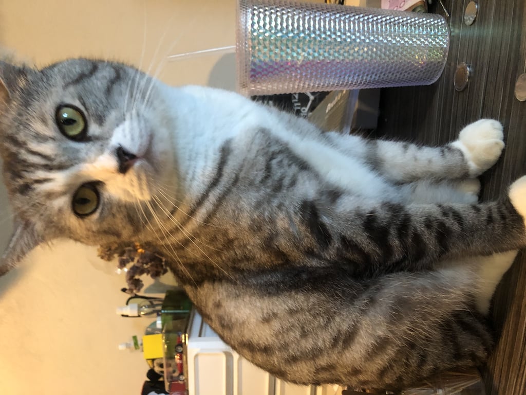รอยตำหนิ: เท้าหน้าเป็นถุงเท้า ตีนสีดำ ใบหน้าแบ่งครึ่งเป็น2สี ตาสีเหลืองค่อนข้างขี้กลัว