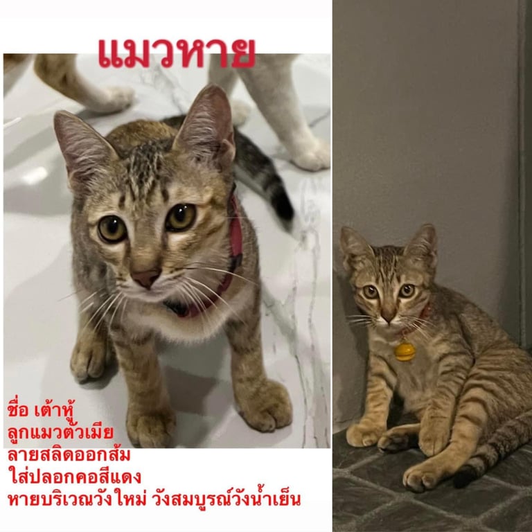 รอยตำหนิ: ใส่ปลอกคอสีแดง กระดิ่งสีเหลืองน้องเพิ่งกลับมาเดินได้