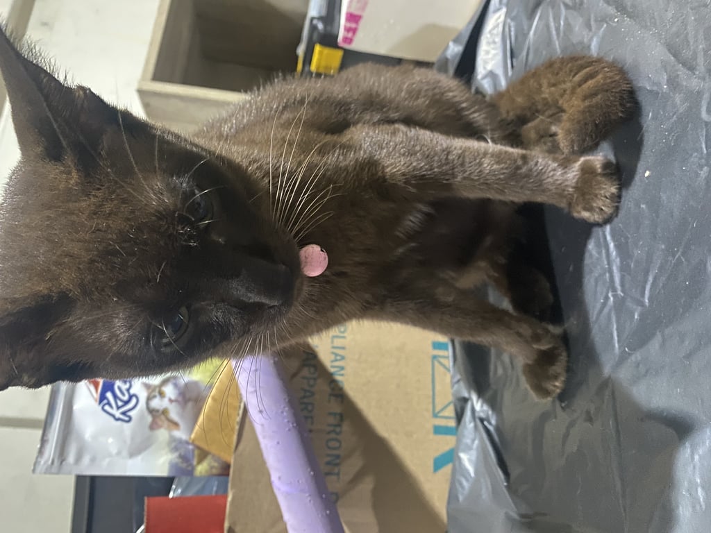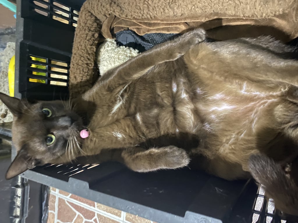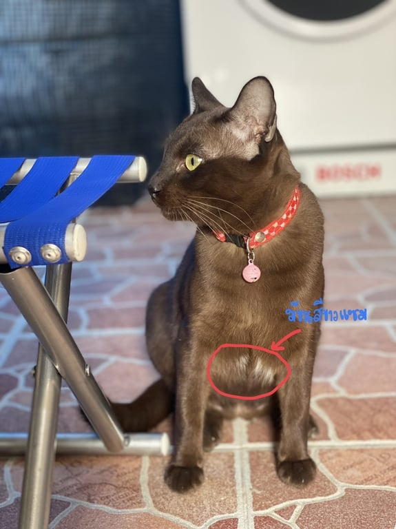 รอยตำหนิ: 4.5 กิโลสีน้ำตาลเข้ม ออกดำ เหมือแมวสุภลกษณ์ ใต้ท้องมีลายขาวๆเล็กน้อย หางยาว