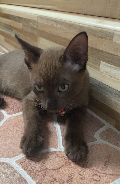 สีน้ำตาลเข้ม ออกดำ เหมือแมวสุภลกษณ์ ใต้ท้องมีลายขาวๆเล็กน้อย หางยาว