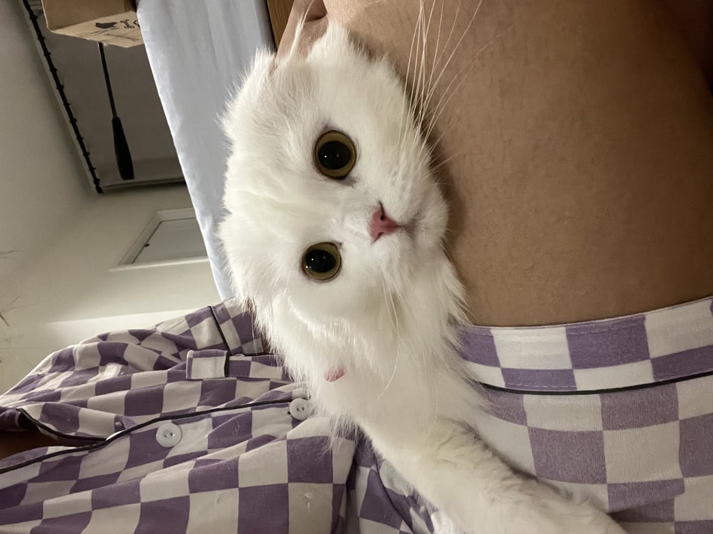 รอยตำหนิ: หูพับ ตาฟ้า ขนยาว ปลอกคอชมพูปลอกคอชมพู ตาเหลือง หูพับ