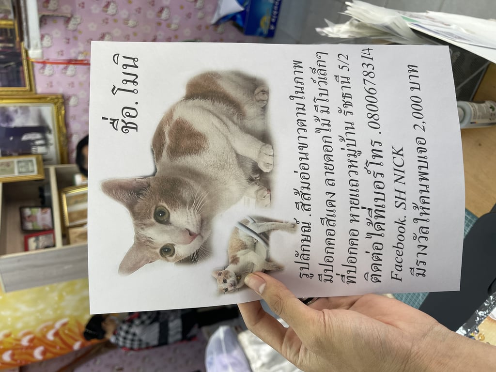 รอยตำหนิ: นำหนัก3กิโล มีปอกคอสีแดงมีโบว์เล็กๆจมูกชมพู เท้าชมพู มีปอกคอสีแดงลายดอกไม้มีโบว์ด้วย ขี้กลัวนิดหน่อยขี้สงสัย