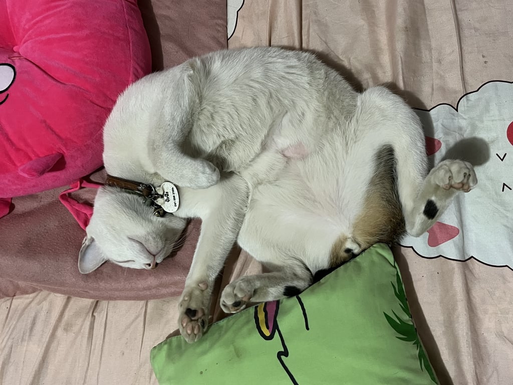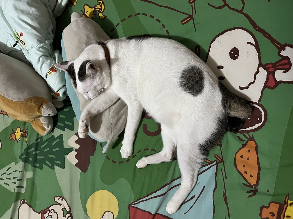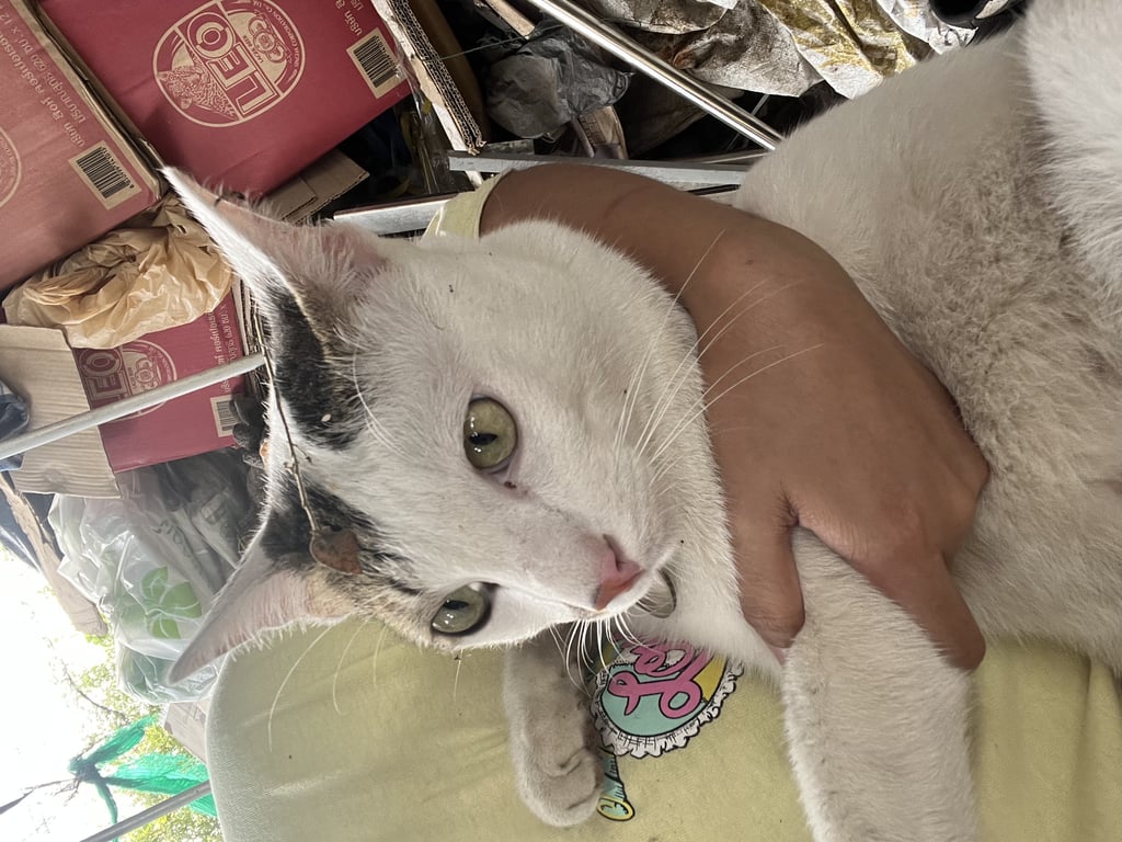 รอยตำหนิ: หางม้วนกุด จมูกมีสองสีเป็นแมวที่เงียบไม่ส่งเสียงโวยวาย เชื่อง ไม่กลัวคน ไม่ดุ ตัวใหญ่