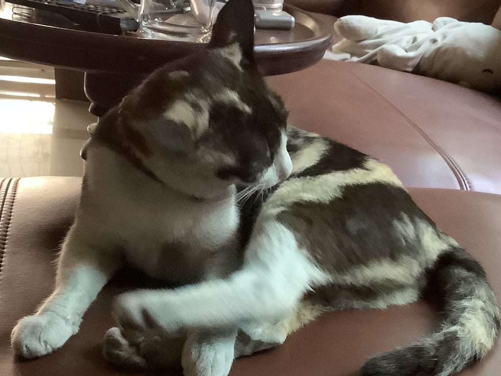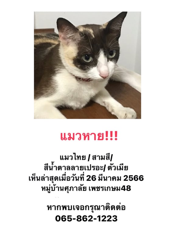 รอยตำหนิ: น้ำหนักประมาณ 4 กิโลปลอกข้อสีแดง ร้องเสียงดัง ชอบขนมแมวเลียมากๆ