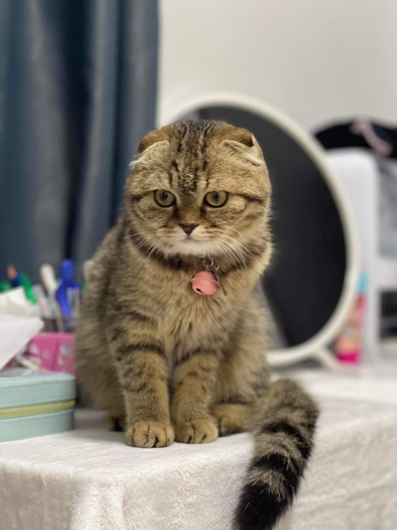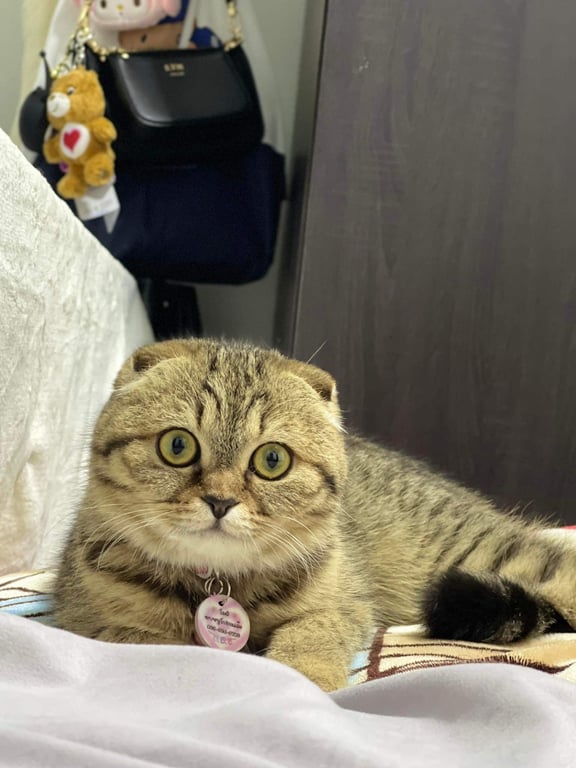 รอยตำหนิ: แขวนปลอกคอสีชมพูเป็นแมวขี้เล่น ตาโต ขนฟู มีปลอกคอสีชมพู ระบุชื่อแมวและเบอร์โทรเจ้าของ