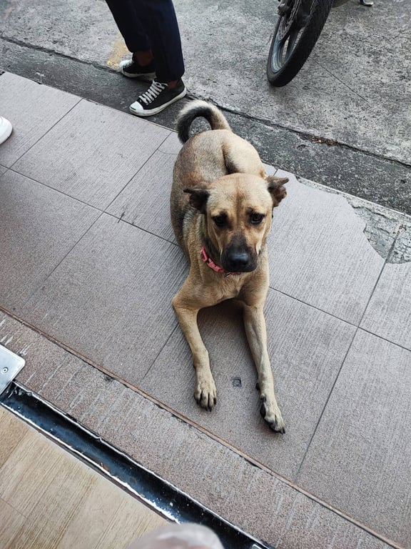 รอยตำหนิ: กำลังตั้งท้อง นมใหญ่เป็นเต้าแล้ว แต่ยังไม่ครบกำหนดคลอด มีปลอกคอแถบสีชมพูเก่าๆเชื่อง ไม่ดุ แต่ชอบเห่าคนถีบจักรยาน
