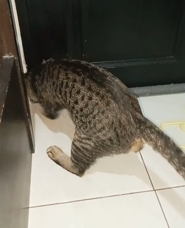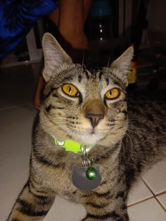 รอยตำหนิ: หางยาว ตาสีเหลือง จมูกออกดำๆ ขาทั้งสี่มีลายขวางตามในรูปเข้ากับคนง่าย ถ้ายังไม่คุ้นจะกลัวๆนิดหน่อยแต่แปปเดียว ไม่เคยกัด มีงับเวลาเล่นด้วยไม่แรง