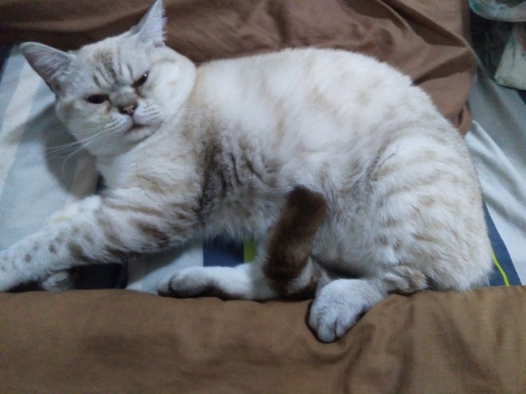 สี: ขาวครีมลายน้ำตาล ตาสีฟ้า ปลายหางสีน้ำตาล