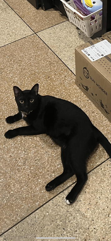 รอยตำหนิ: มีขนหน้าอกสีขาว ขนปลายเท้าซ้ายสีขาว หางยาว ปลายหางหักนิดหน่อยขี้กลัวมาก ตะกละ ชอบกินอาหารคน