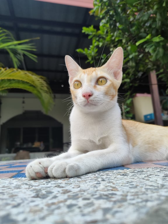 รอยตำหนิ: หางยาว ปลายหางงอนิดหน่อย หลังอานเป็นเส้นตรง ใส่ถุงเท้ายาวสีขาวที่ 2 ขาหน้า ถุงเท้าขาว 2 ขาหลังเป็นแมวขี้สงสัย อยากรู้อยากเห็นไปหมด เรียกไม่มา กลัวรถกับกลัวหมามาก ชอบกินอาหารเปียก เฟรนด์ลี่ พลังงานล้น ร้องเก่ง บ่นเก่ง นิสัยเหรยซหน่อยๆ ค่ะ