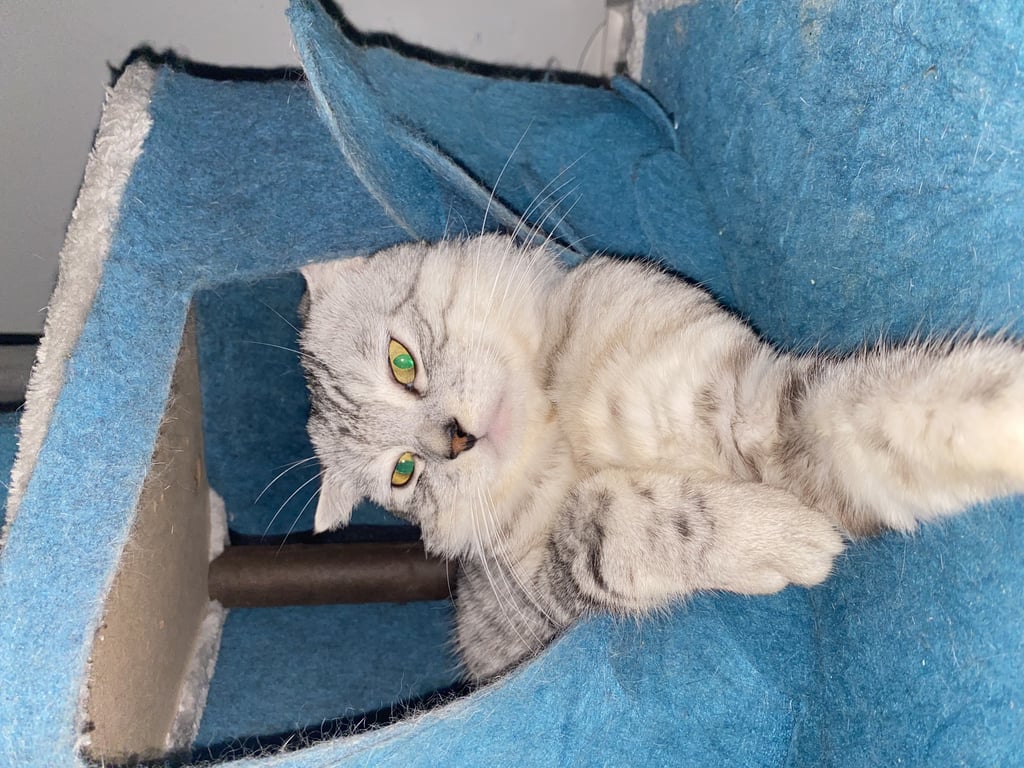 รอยตำหนิ: น้ำหนัก4โล ช่วงนี้น้องผอมน้องจะนิ่งๆ เเต่ช่วงนี้น้องติดสัตว์ แล้วน้องเปิดประตูห้องเองได้น้องเลยเดินออกไป