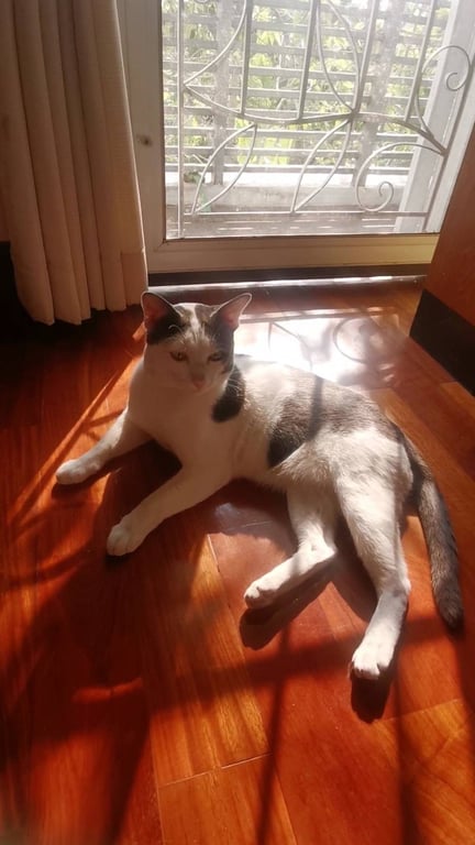 รอยตำหนิ: น้ำหนัก4โล มีรอยขนแหว่งที่แก้มขวาขี้อ้อน ฉลาด สามารถเปิดประตูบานเลื่อนเองได้