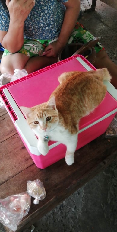 รอยตำหนิ: มีดอยด่างดำที่จมูกจาดดารโดนแมวกัดน้องใส่ปบอกคอสีฟ้า มีกระดิ่งชื่อว่าถุงทอง/เบอร์โทร/คิวอาร์โค้ดไลน์ น้องนิสัยขี้อ้อน ขอบเดินตามคน ไม่กลัวคน ชอบปีนขึ้นรถทั้งรถมอเตอร์ไซต์และรถยนต์