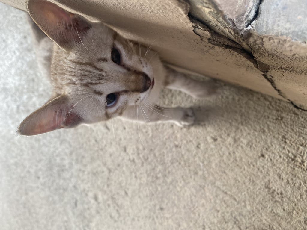 รอยตำหนิ: เป็นแมวตาเล็ก ตาน้องจะตี่กว่าแมวทั่วไป นน. ประมาณ 1.5-2 กิโลเป็นแมวขี้อ้อน ติดคน กินจุมาก