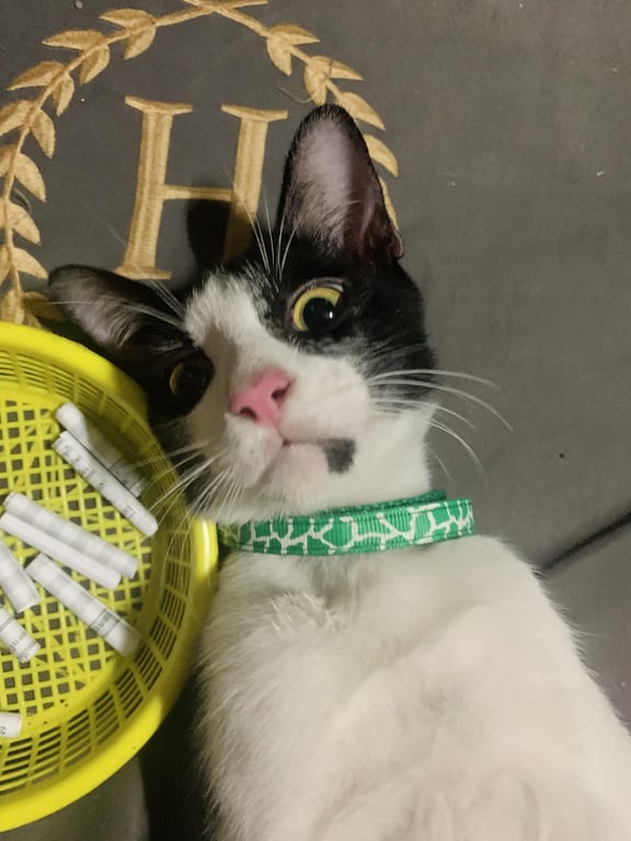 รอยตำหนิ: จะมีปานดำที่ข้างปาก และ มีจุดสีขาวกลางหลังแมวขี้อ้อน ไม่กลัวคน ไม่กัด ขี้เล่น