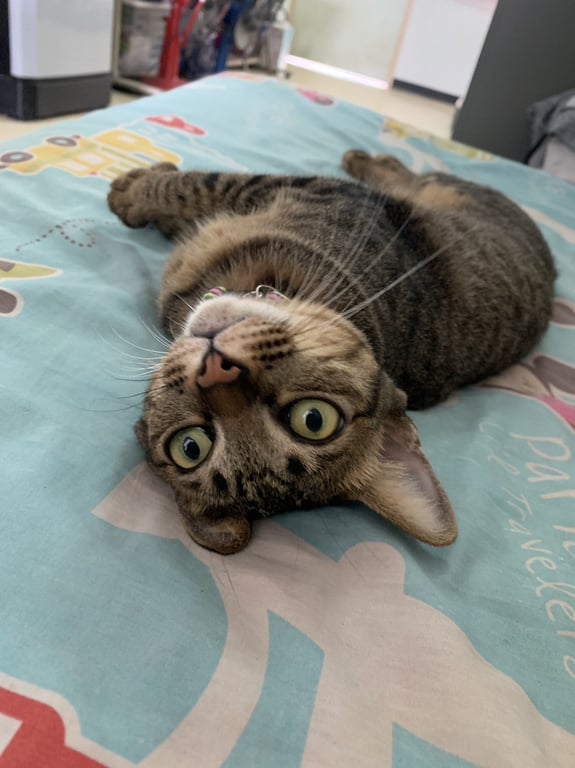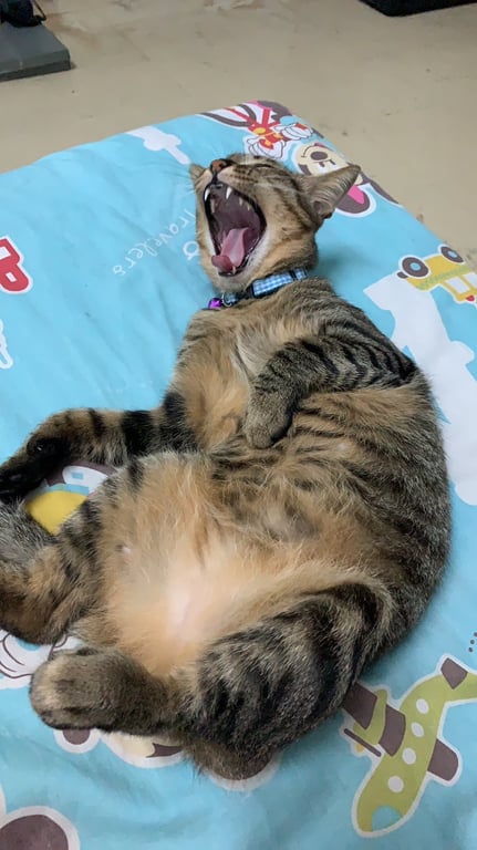 รอยตำหนิ: ไม่มีเหนียง มีแต่พุงห้อยๆ หางยาวน้องกลัวคนอื่น ที่ไม่ใช่เจ้าของ เป็นแมวที่ไม่ค่อยร้อง ขี้อ้อนแค่กับเจ้าของ ใครพบเจอมีสินน้ำใจเล็กๆน้อยๆ