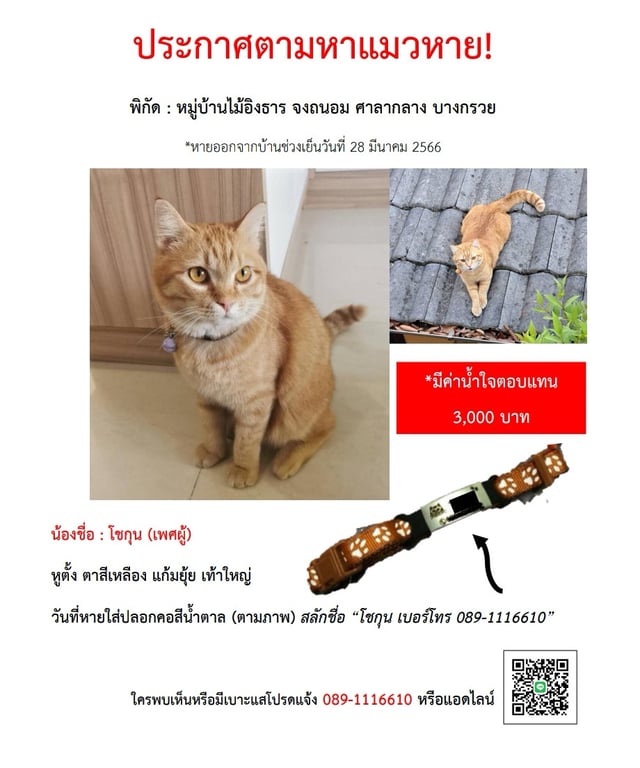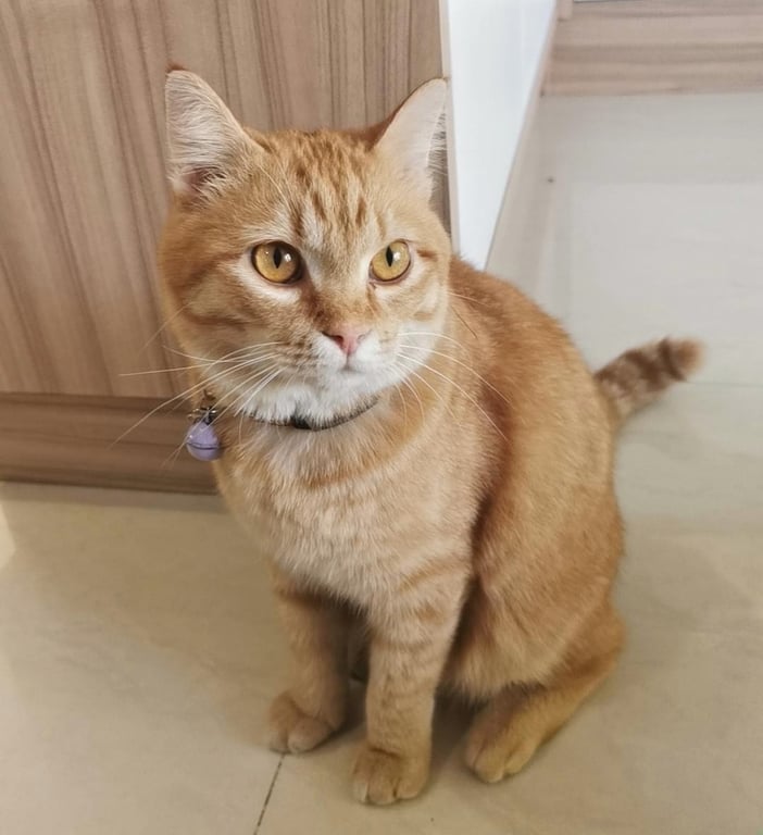 รอยตำหนิ: พันธุ์ผสม ขนยาว เท้าใหญ่ ปลายหางสีขาว หนวดขาว ลำตัวฝั่งขวามีรอบแผนเป็นที่ขนแหว่งเล็กๆ เสียงร้องเล็กๆน้องน่ารักขี้อ้อน เป็นมิตรกับคน