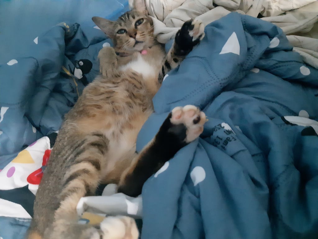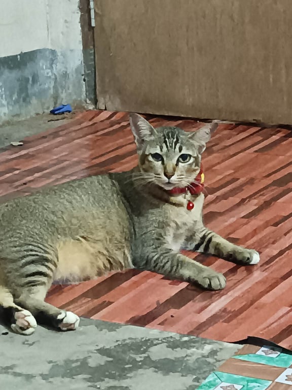 รอยตำหนิ: หางตรงไม่คด มีถุงเท้า3ข้างเป็นสีขาว อีกข้างเป็นอีกข้างเป็นสีปกติไม่ดุ อ้วนลงพุงนิดหน่อย