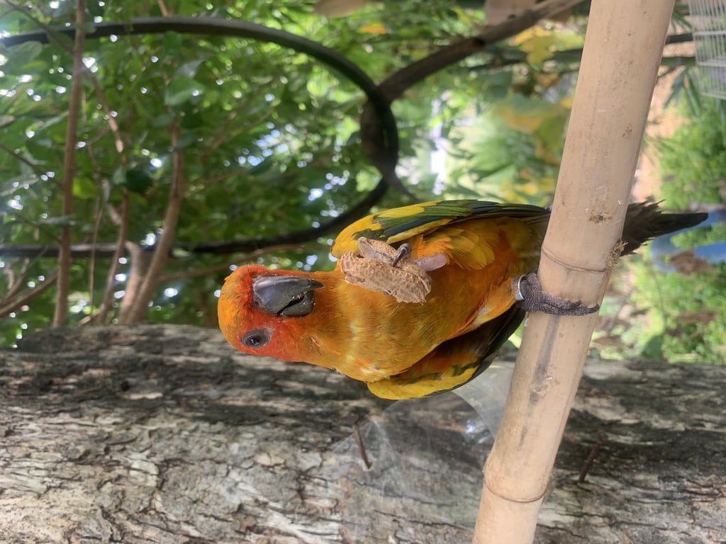 รอยตำหนิ: มีข้อขาข้างขวา เท้าอ้วนๆค่อนข้างดุ ไม่ให้คนจับง่ายๆ อยู่เป็นคู่กับนกอีกตัว ไม่ชอบโดนขัง