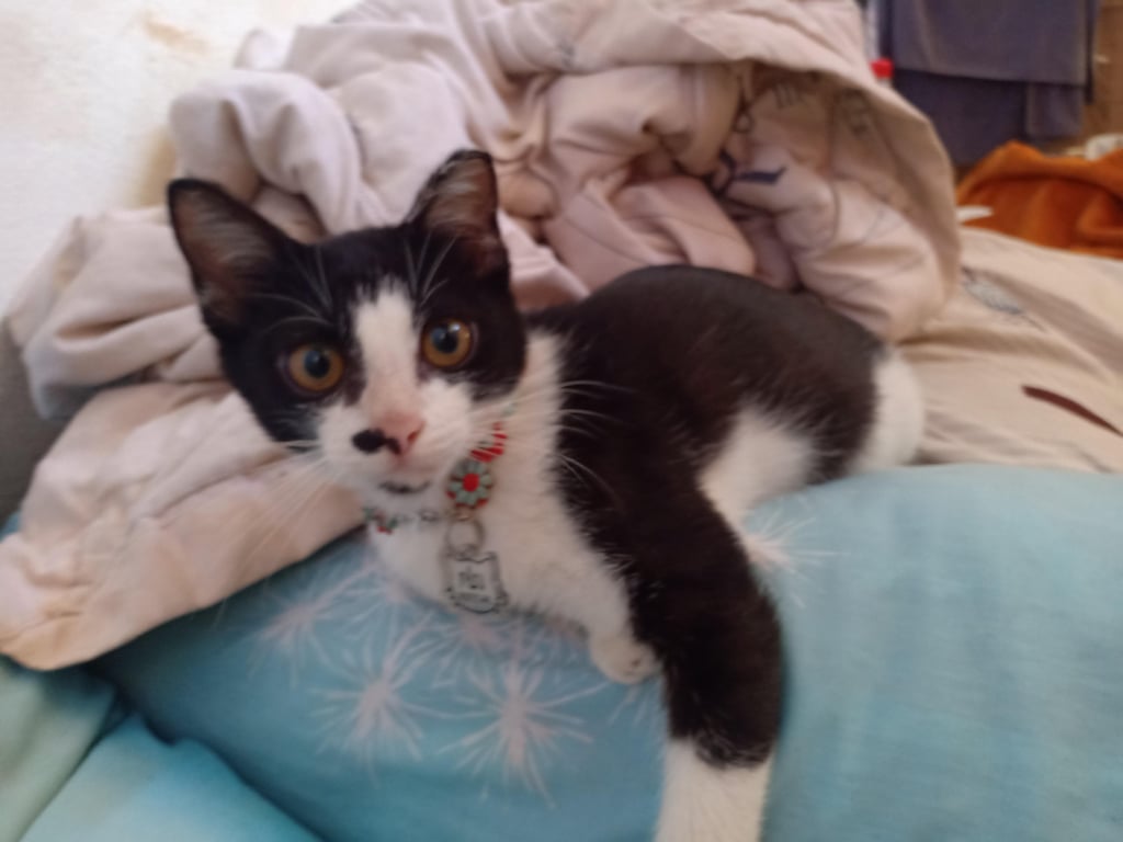 รอยตำหนิ: ขาหน้าด้านซ้ายผิดรูป ปลายหางงอ ปลายหูด้านซ้ายแมวเป็นแผลๆน้องมีนิสัยไม่ค่อยร้อง จะเอ๋อๆ มึนๆ เดินหมุน เอียงคอบ่อยๆ ไม่ค่อยเต็มเพราะหัวกระแทกอย่างแรงตอนรถชน