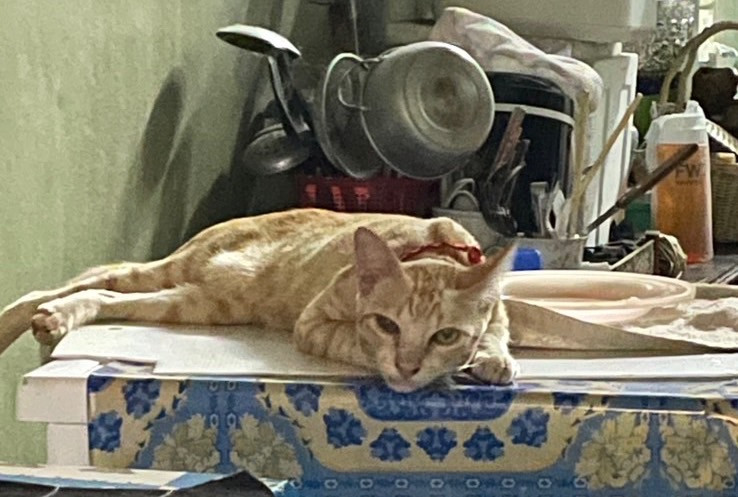 รอยตำหนิ: หางยาวสีส้ม ฟันล่างยื่นออกมา มีปลอกคอกระดิ่ง5 เดือน นิสัยเชื่อง ติดคน