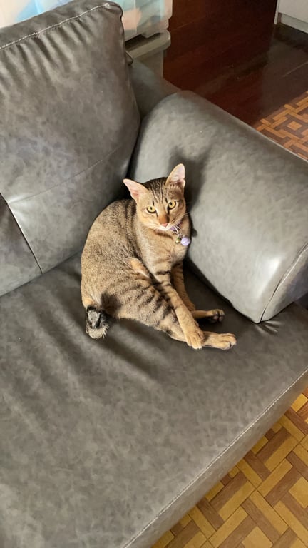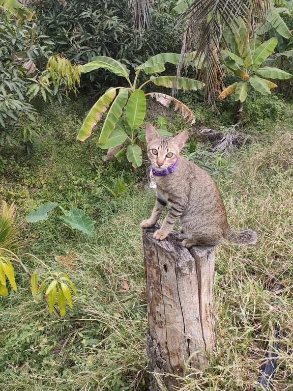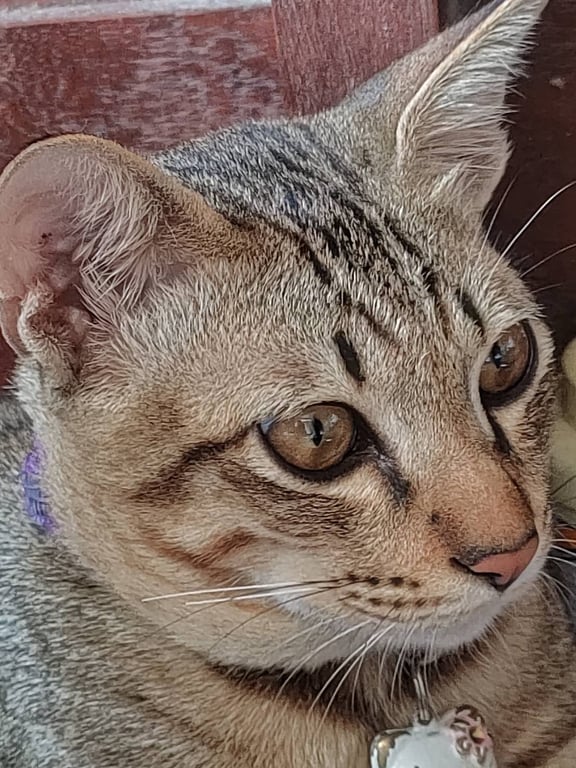 รอยตำหนิ: ปลายหางกุดจมูกสีชมพู ปลอกคอสีม่วง มีกระดิ่ง