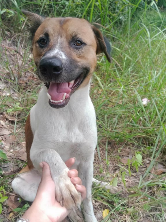 รอยตำหนิ: หูพับ หางตั้ง สีส้ำตาลครึ่งนึง สีขาวครึ่งนึงน้องค่อนข้างเชื่อง ขอมือได้ สวัสดีเป็น ไม่ได้ใส่ปลอกคอ