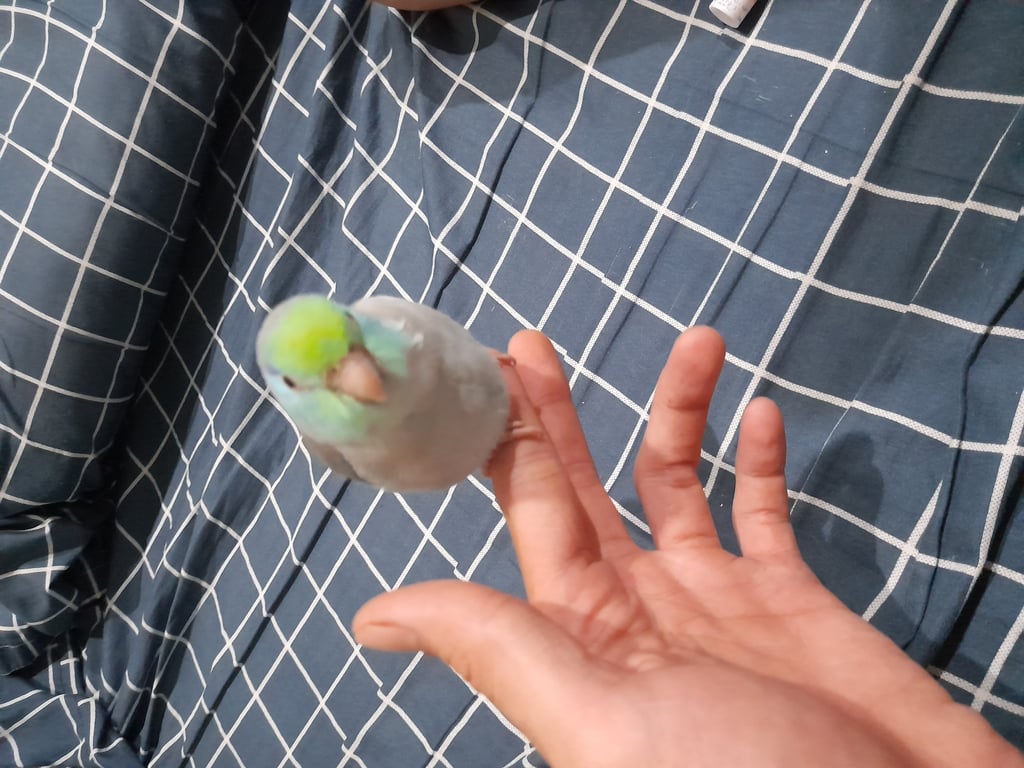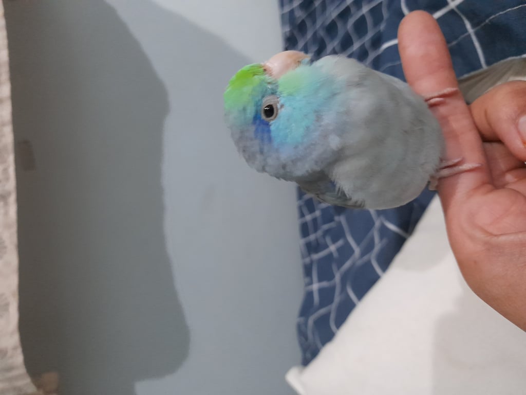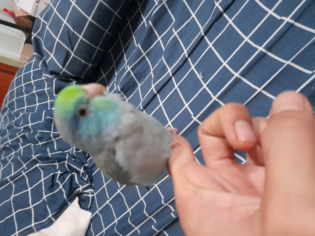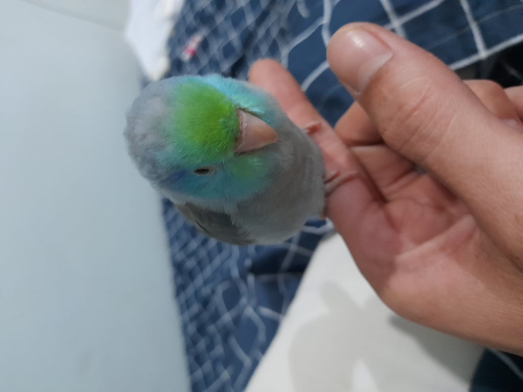 รอยตำหนิ: หัวสีเขียว ขนขอบตาสีน้ำเงินน้องเชื่อง น้องติดคนมาก น้องมีห่วงขานัมเบอร์ ของน้อง
