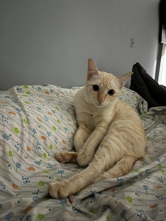 รอยตำหนิ: หลังอาน มีจุดหนึ่งบนหลังไม่มีขน น้ำหนักประมาณ 2 kg.ชื่อแรมโบ้ เป็นแมวขี้กลัว น้องรู้จักชื่อตัวเอง เรียกได้ไม่กัด ปลอกคอไม่มีเพราะปลอกคอตกอยู่ในบ้าน