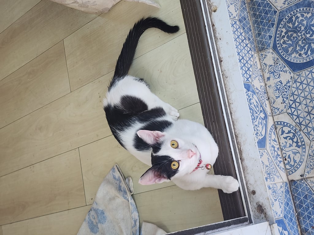 สี: ขาวจุดดำ ปลอกคอสีแดล