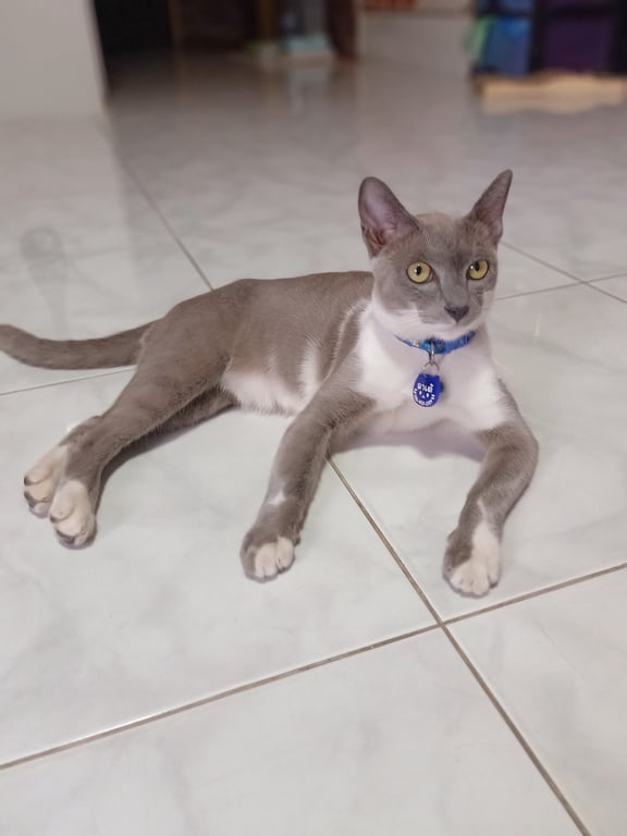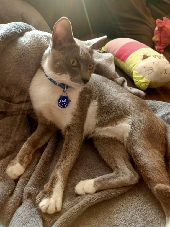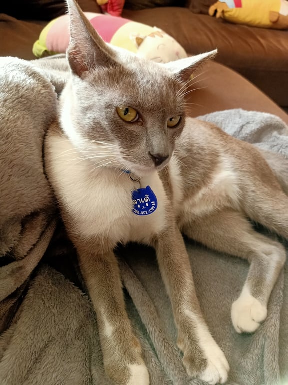 รอยตำหนิ: สีเทา คอขาว มีป้ายชื่อ เบอร์โทร หายวันที่14/4/66ปกติเขาไม่ค่อยห่างบ้าน ขี้ตกใจ มีป้ายชื่อตามภาพเลยค่ะ