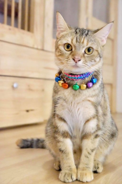 รอยตำหนิ: สีขนเป็นสร้อยที่คอขี้กลัว ร้องไม่มีเสียง ไม่ชอบให้อุ้ม ชอบเอาหน้ามุดหนี