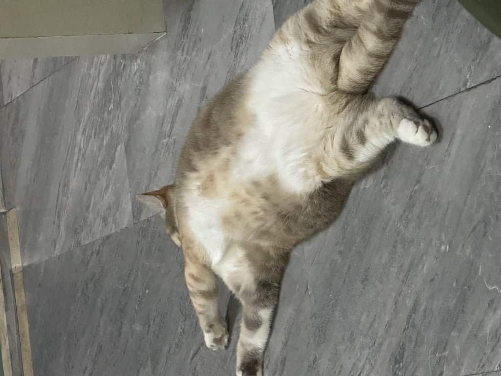 รอยตำหนิ: ท้องขาว ที่เท้าเหมือนใส่ถุงเท้าขาวชอบนอนหงายพุง ขี้โวยวาย ชอบให้แปรงขน ชอบมานอนด้วย