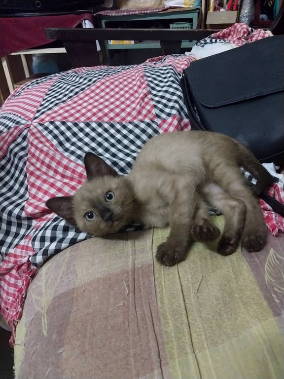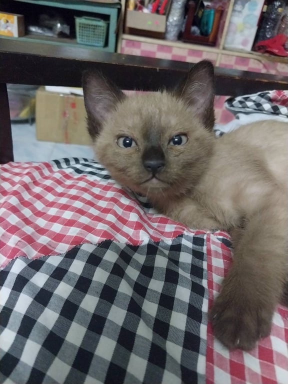 รอยตำหนิ: หู เท้า หาง สีน้ำตาลเข้ม หางกวัก ปลอกคอสีฟ้าขี้ระแวง กลัวคนแปลกหน้า