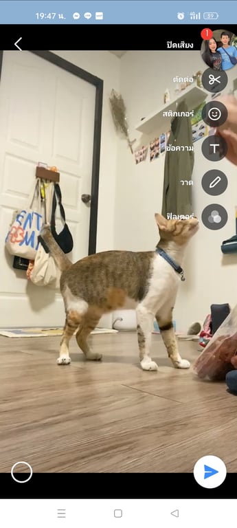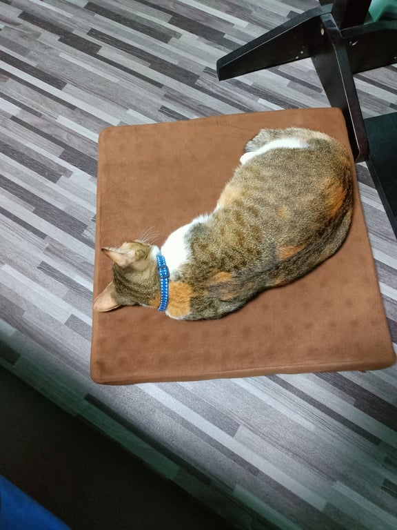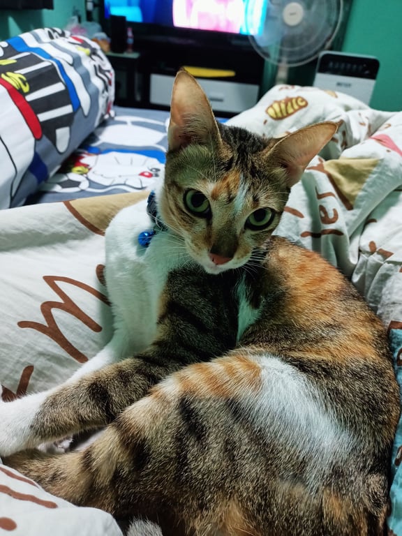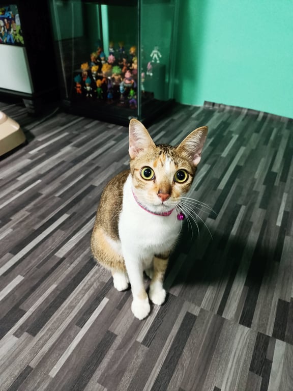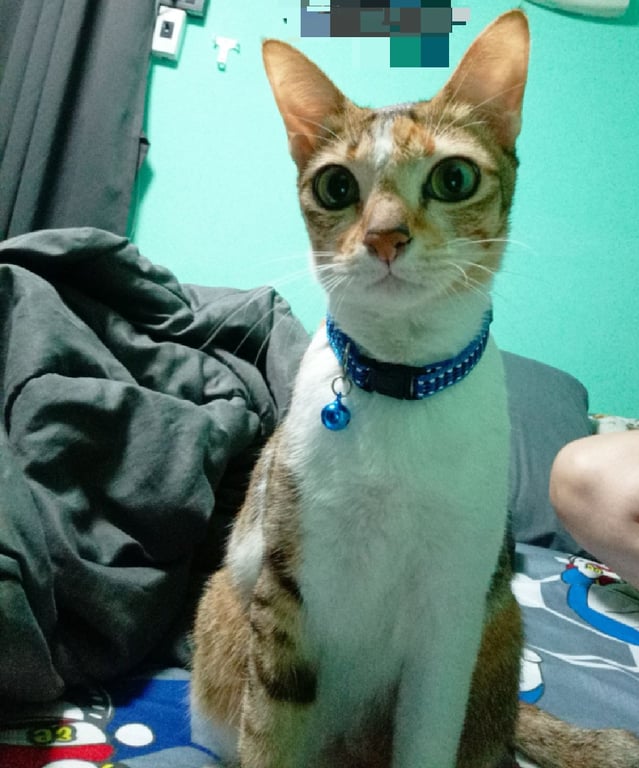 รอยตำหนิ: ปลายหางหัก เขี้ยวฟันข้างขวาหัก กระดิ่งสีน้ำเงิน ขี้ตกใจขี้เล่น ขี้ตกใจ
