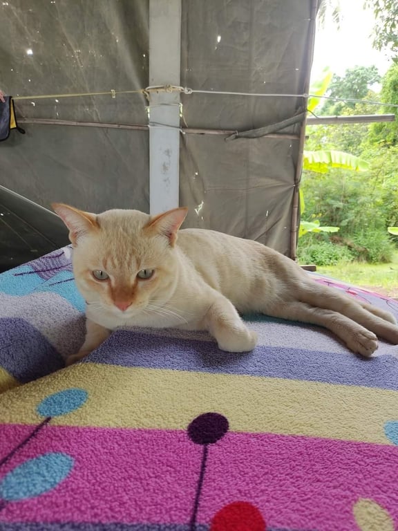 รอยตำหนิ: หน้าใหญ่ๆ ปลอกคอแดงปลอกคอแดง หน้าใหญ่ ร้องเก่ง ขี้อ้อน สีครีมออกส้ม ตัวผู้