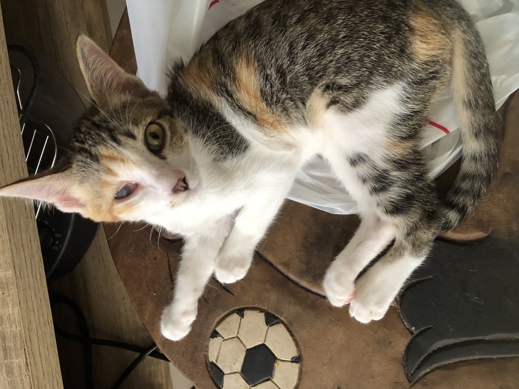 รอยตำหนิ: น้องตาบอด1 ข้างตัวเล็กมากน้องกลัวเสียงดังมาก ขี้ตกใจ เสียงร้องไม่มี น้ำหนักแค่ 1 กิโล อายุ 2 เดือน