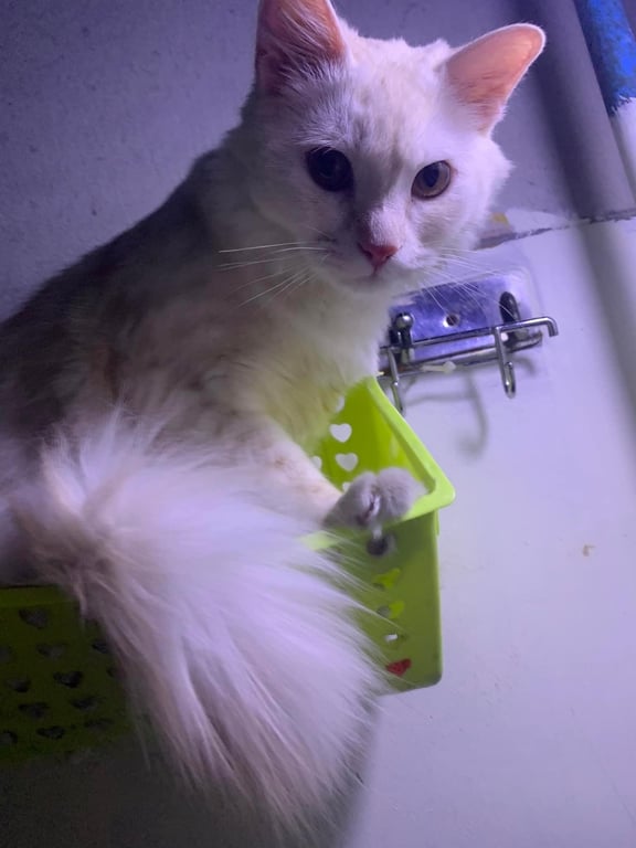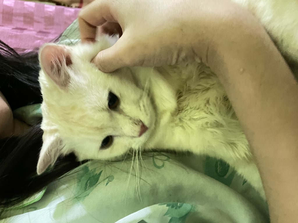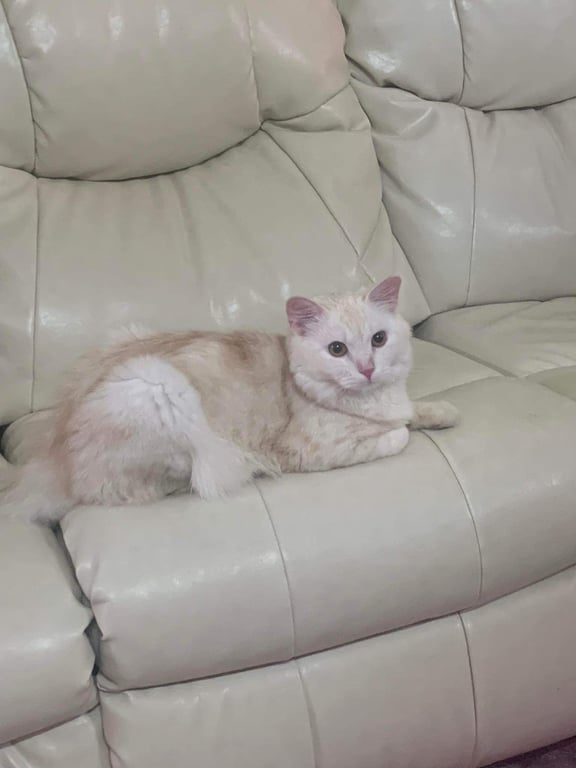 รอยตำหนิ: ตรงหน้าท้องน้องจะมีเนื้อนูนออกมา น้ำหนัก4โล8เดือนกว่า นิสัยดื้อ แต่ไม่กัดชอบกินอาหารแมวเลีย ตาสีน้ำตาลทอง จมูกชมพู