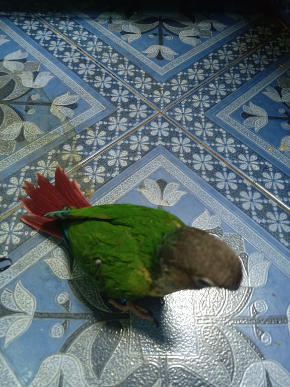 สี: เขียว หางแดง ปากดำ เท้าขาว