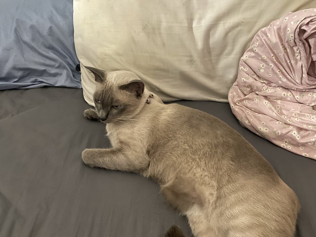 รอยตำหนิ: ที่ปลอกคอมีกระะดิ่งสีชมพู + ป้ายชื่อและเบอร์โทรกลับขี้กลัว ตกใจเสียงดัง ไม่ยอมให้คนแปลกหน้าจับ