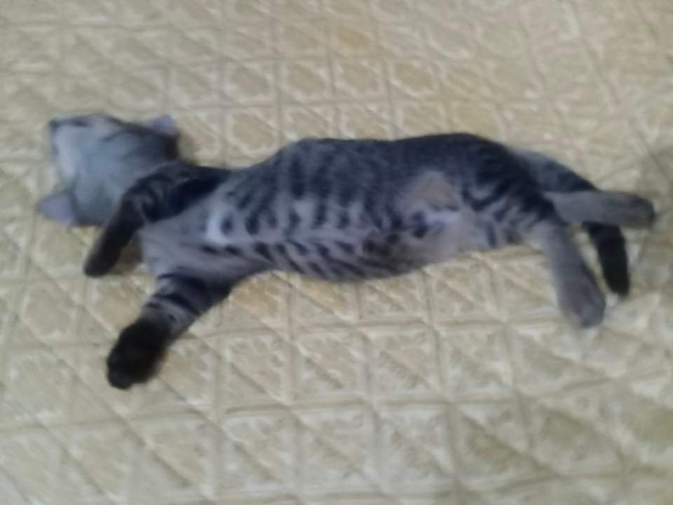 รอยตำหนิ: จะมีขีดสองขีดตรงหน้าผาก ขาหน้าสั้นมีกระดิ่งห้อยที่คอ ชอบหลบใต้ท้องรถ กลัวเสียงดัง กลัวหมา เป็นเเมวขาสั้น