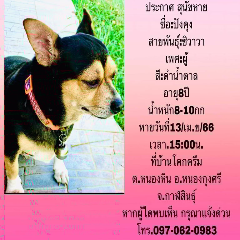 รอยตำหนิ: หางมีไขมัน..น้ำหนัก8-10กกใส่กระดิ่งสีรุ้งสะท้องแสง