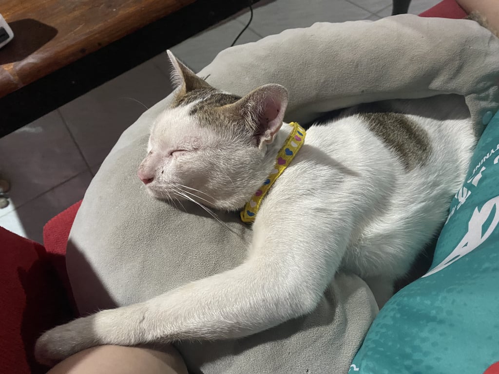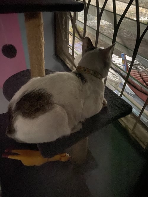 รอยตำหนิ: น้องสีขาว มีวงแพวตัววงใหญ่ๆเป็นสีสลิดน้องเข้ากับคนได้ง่าย ไม่กลัวคน ชอบร้องเสียงดัง ตัวน้องจะสีขาวแต่ละมีสีแซมลายสลิด