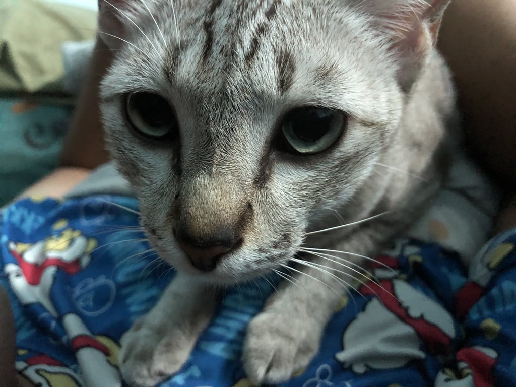 รอยตำหนิ: หางหักปลาย ท้องย้วยไม่มีปลอกคอ ตื่นตัวที่ที่มีคนเยอะและเสียงดัง บางทีชอบแอบในที่มืด